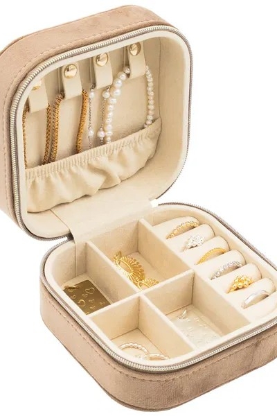 Lekkert smykkeskrin i velur, rikelig med oppbevaringsrom for å sikre at smykkene dine